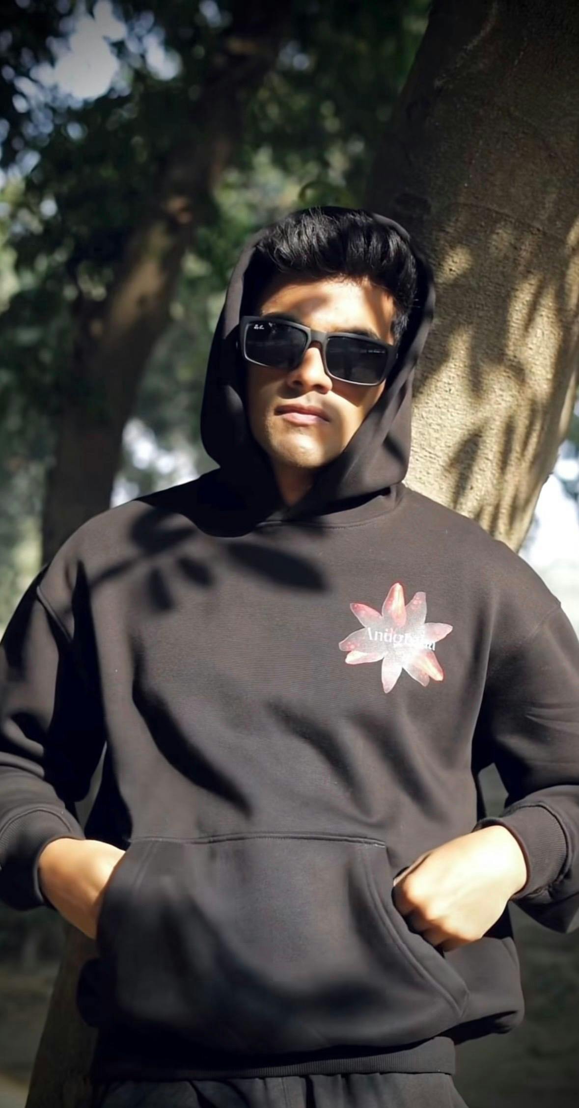 The Anugraha Unisex Black Oversized Fit Fleece Hoodie